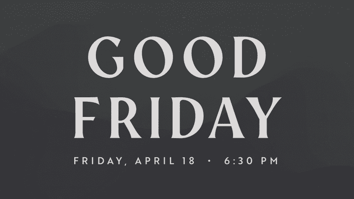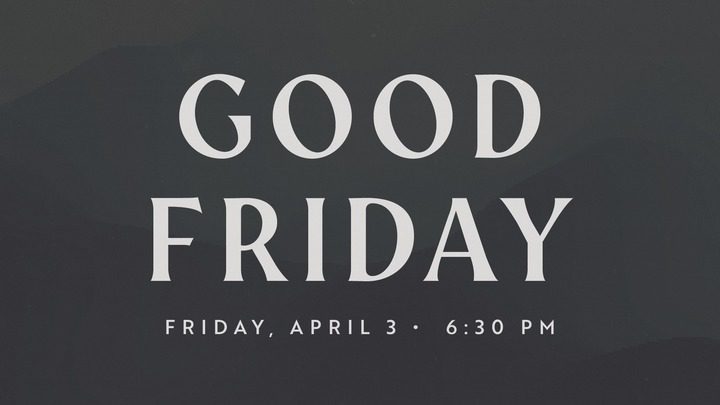 Join us for a special Good Friday service on April 3 at 6:30 pm. We will spend time reflecting on the death of Jesus as we prepare to celebrate his resurrection on Sunday. Childcare will not be available for this service.